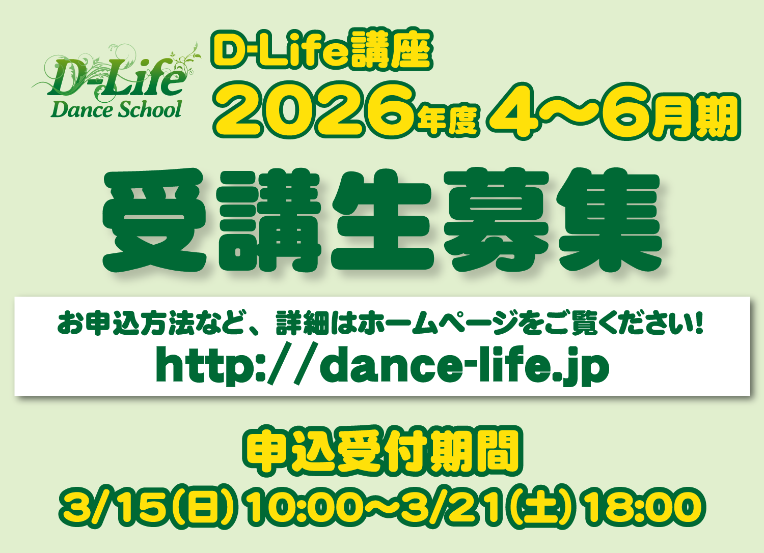 【D-Life月謝制クラス】2026年1-3月の体験受け入れ&2026年度新規入会について