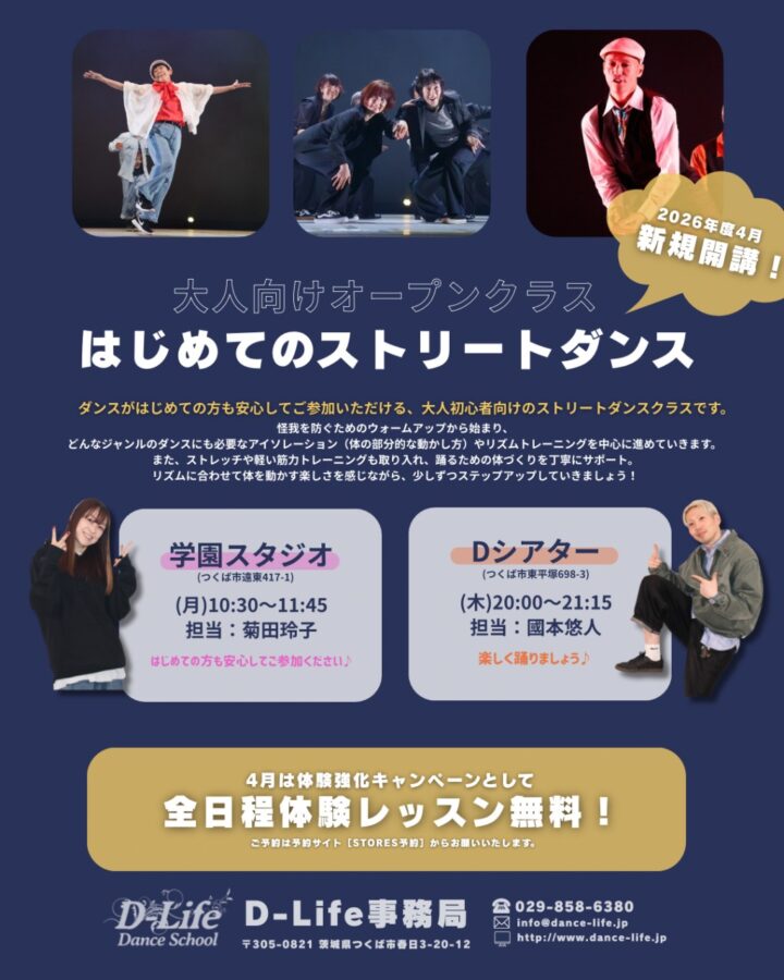 【大人向けオープンクラス】体験レッスン受付中!2026.4-6月