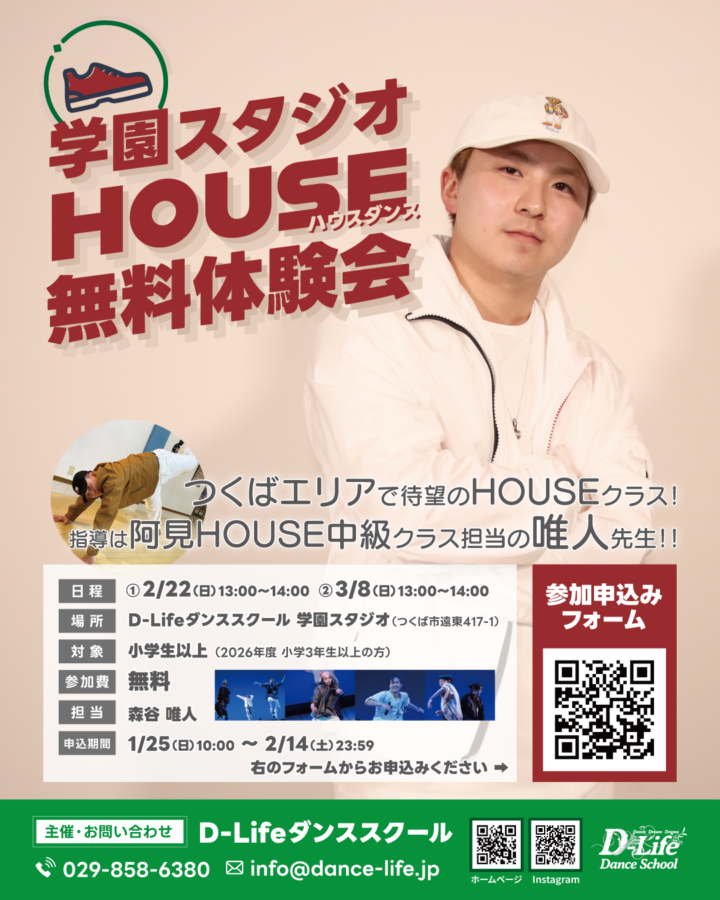 【2026年2・3月】学園スタジオ:HOUSEクラス無料体験会開催!