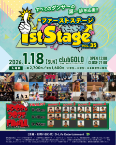 「1st Stage(ファーストステージ)」は、すべてのダンサーの初めてのチャレンジを応援するアットホームなクラブ型イベントで、デイイベントで子どもも大人も踊り放題!